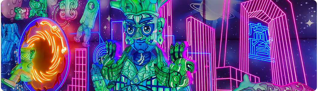 巧妙利用多種先進(jìn)的現(xiàn)代光源、全息投影、結(jié)合傳統(tǒng)手工藝等成熟技術(shù)手段支持創(chuàng)意實(shí)現(xiàn)