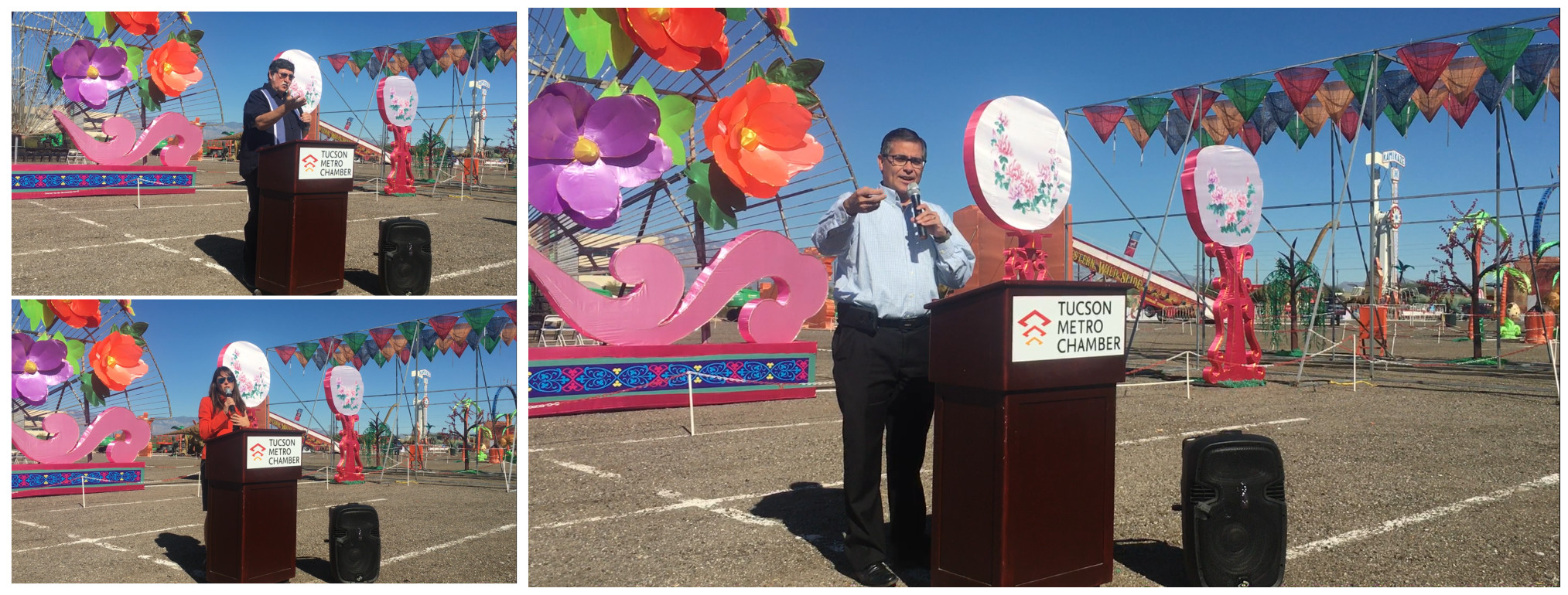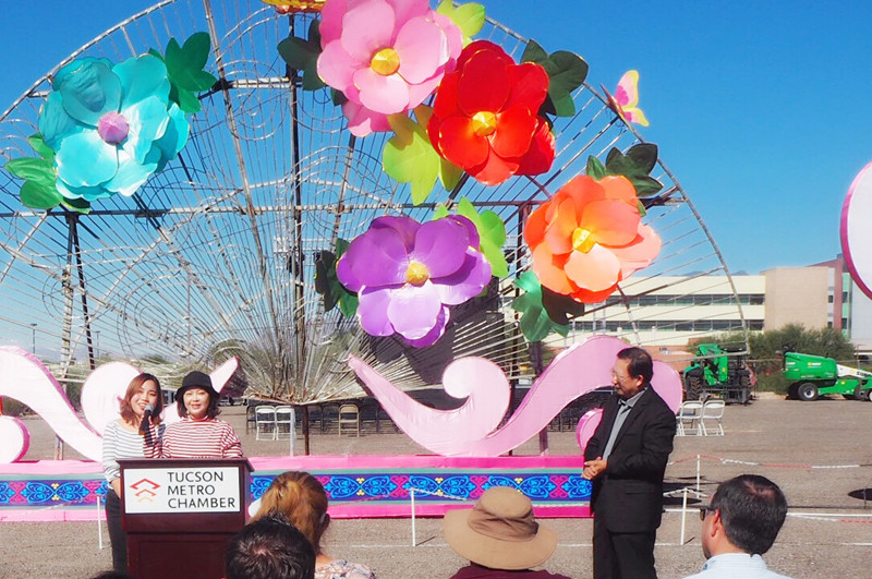 璀璨絢麗、獨(dú)具神韻的“2018世界之光圖森彩燈嘉年華”于11月7日在美國(guó)西部城市圖森華彩綻放。燈展受到當(dāng)?shù)卣蜕鐣?huì)各界的廣泛關(guān)注。Pima郡行政長(zhǎng)官、圖森市常務(wù)副市長(zhǎng)、市議會(huì)議員、郡商會(huì)會(huì)長(zhǎng)、市大都會(huì)商會(huì)董事長(zhǎng)、市旅游局局長(zhǎng)、市交通局局長(zhǎng)等美方官員出席開(kāi)幕式。