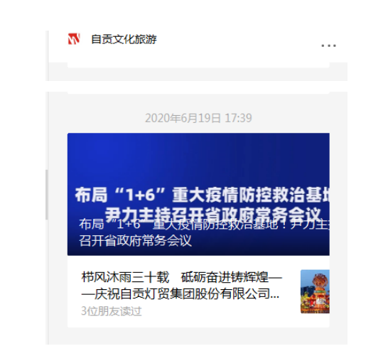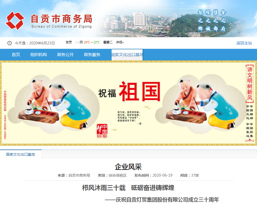 圖二:自貢市文化旅游局微信公眾號自貢文化旅游慶祝自貢燈貿(mào)集團股份有限公司成立三十周年