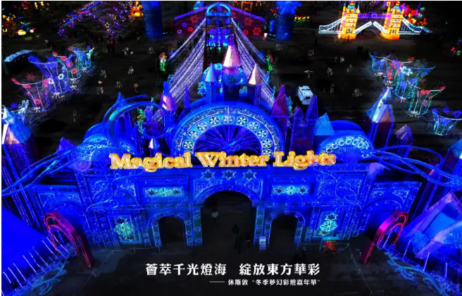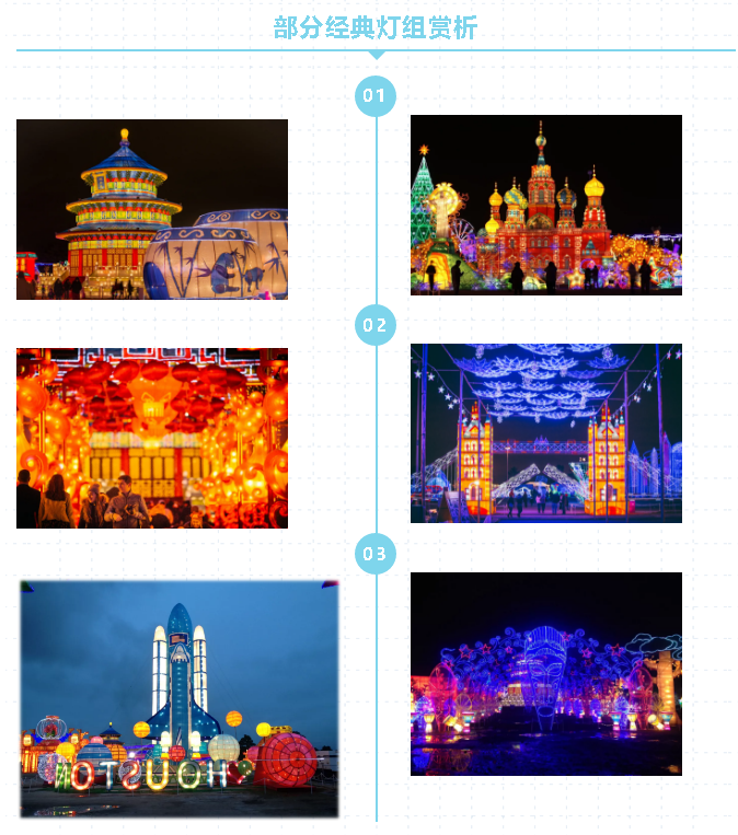 休斯敦“冬季夢幻彩燈嘉年華”分為“冬夢奇景”、“共同的世界”、“遠古的呼喚”、“東方之燈”等七大主題板塊,展出燈組數(shù)近200余組。