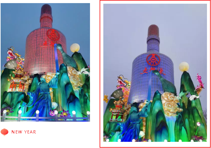 《五糧液》主燈組采用第八代五糧液酒瓶運(yùn)用自貢彩燈傳統(tǒng)工藝?yán)υ删扌臀寮Z液,輔以仙山、仙境、巨龍騰越氛圍闡釋五糧傳奇,杯酒時(shí)光,百年味道。周邊群燈組展示封存在時(shí)光中的“活窖池”--利川永、張萬(wàn)和、劉鼎興、天賜福、聽(tīng)月樓、全恒昌等八家明代釀酒作坊,歷史悠久的古窖池群講述著傳承幾百年的五糧液釀酒工藝,折射幾千年氤氳酒香的中國(guó)酒歷史和酒文化。
