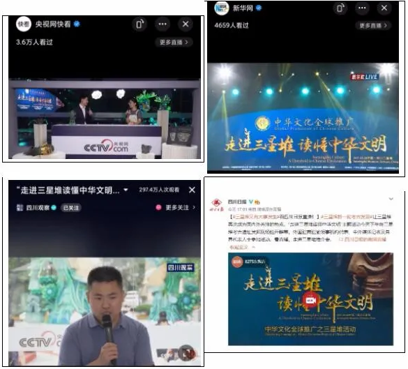 據(jù)了解,“走進(jìn)三星堆 讀懂中華文明”主題活動(dòng)消息發(fā)布以來(lái),人民日?qǐng)?bào)、新華社、中央廣播電視總臺(tái)和泰晤士報(bào)、聯(lián)合早報(bào)、共同社等50余家中外主流媒體進(jìn)行了報(bào)道和轉(zhuǎn)載,其中,央視網(wǎng)、央視新聞、人民日?qǐng)?bào)、新華社、四川日?qǐng)?bào)、四川觀察等多家媒體進(jìn)行了活動(dòng)直播,引起海內(nèi)外網(wǎng)友廣泛關(guān)注。