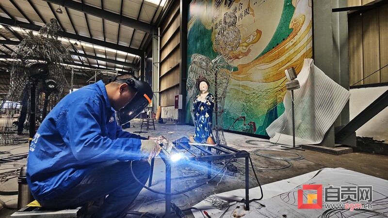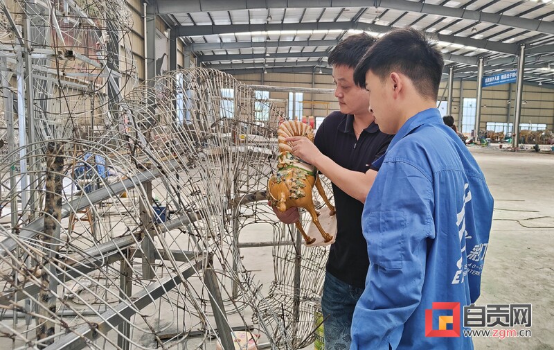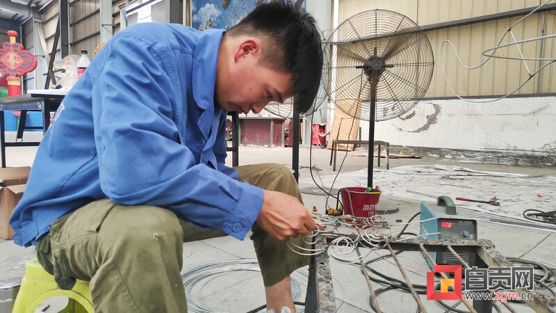 8月10日下午,記者走進(jìn)自貢燈貿(mào)集團(tuán)股份有限公司生產(chǎn)車(chē)間,專(zhuān)訪燈貿(mào)集團(tuán)“唐風(fēng)華韻”展品項(xiàng)目。4名彩燈造型師就像魔術(shù)師一般,讓手中冰冷鋼絲,變成了栩栩如生的造型。“從7月中旬以來(lái),我們就開(kāi)始進(jìn)場(chǎng)施工,工作時(shí)并不覺(jué)得熱,常常引來(lái)一旁同事的關(guān)心?!痹?0多度的高溫下,38歲的彩燈造型師楊勝平因?yàn)樘度雱?chuàng)作,衣服濕了又穿干,還全然不知。