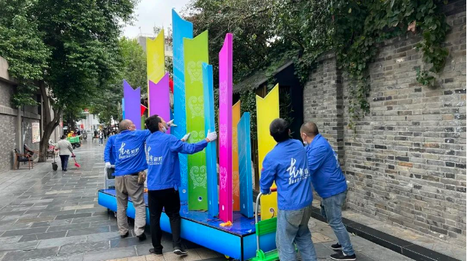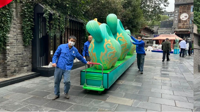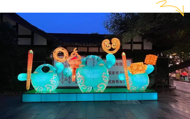 滿繪彩色圖案的金沙象牙燈組、文物造型設(shè)計(jì)燈組《嗚嚕嚕》,演繹著傳統(tǒng)文化的“國潮”新風(fēng)尚,彰顯著文創(chuàng)帶給這座城市的新鮮感和創(chuàng)造力。分布在寬窄巷子景區(qū)燈組,讓游客一腳踏入光影幻境中的古蜀王國。